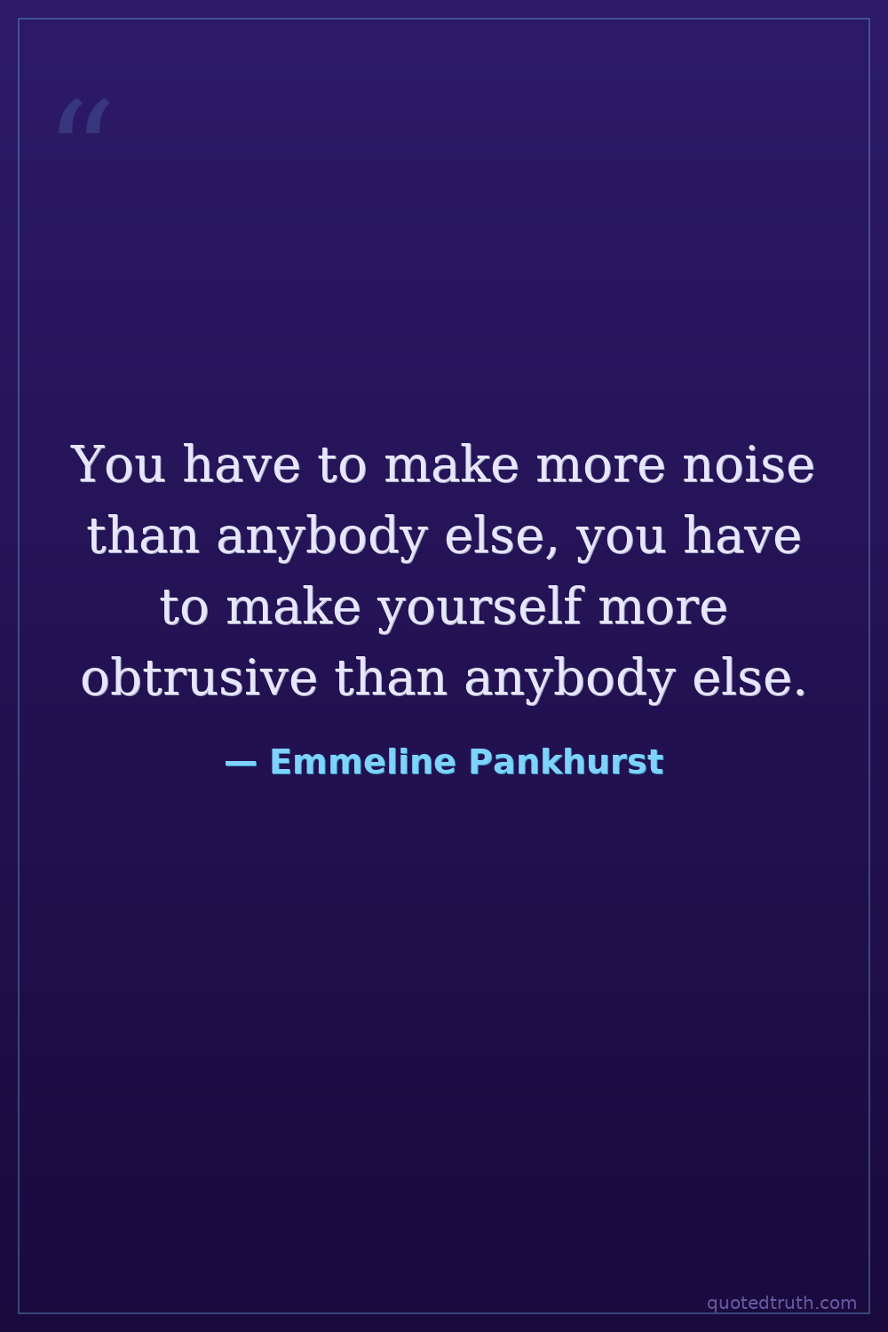 You have to make more noise than anybody else, you have to make yourself more obtrusive than anybody else.