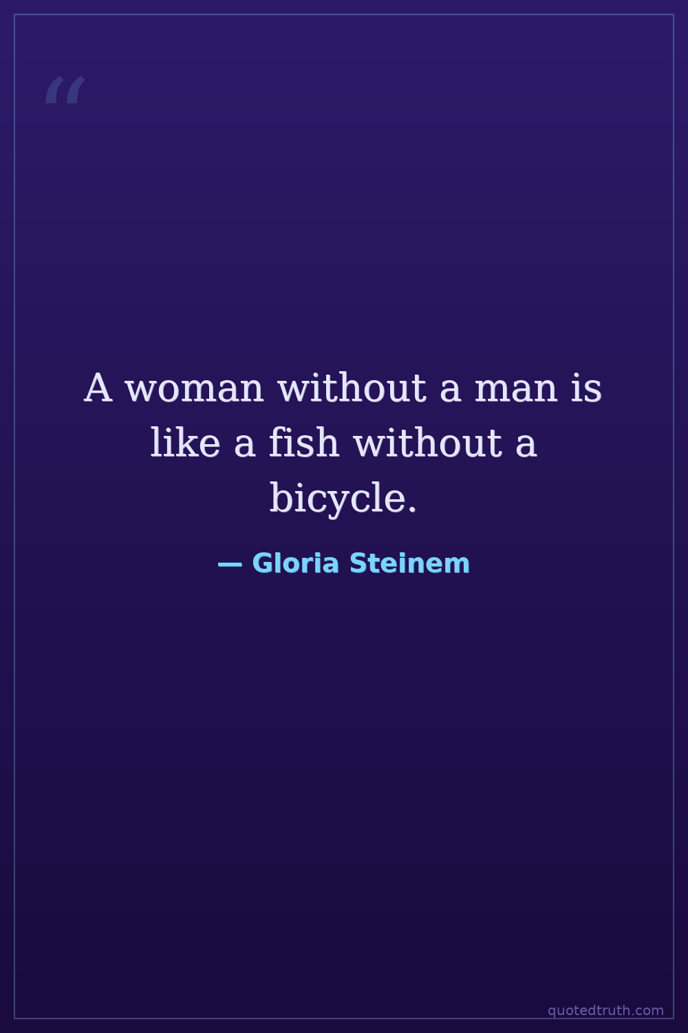 A woman without a man is like a fish without a bicycle.