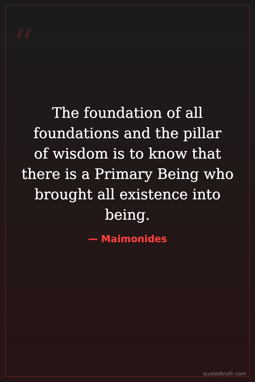 The foundation of all foundations and the pillar of wisdom is to know that there is a Primary Being who brought all existence into being.