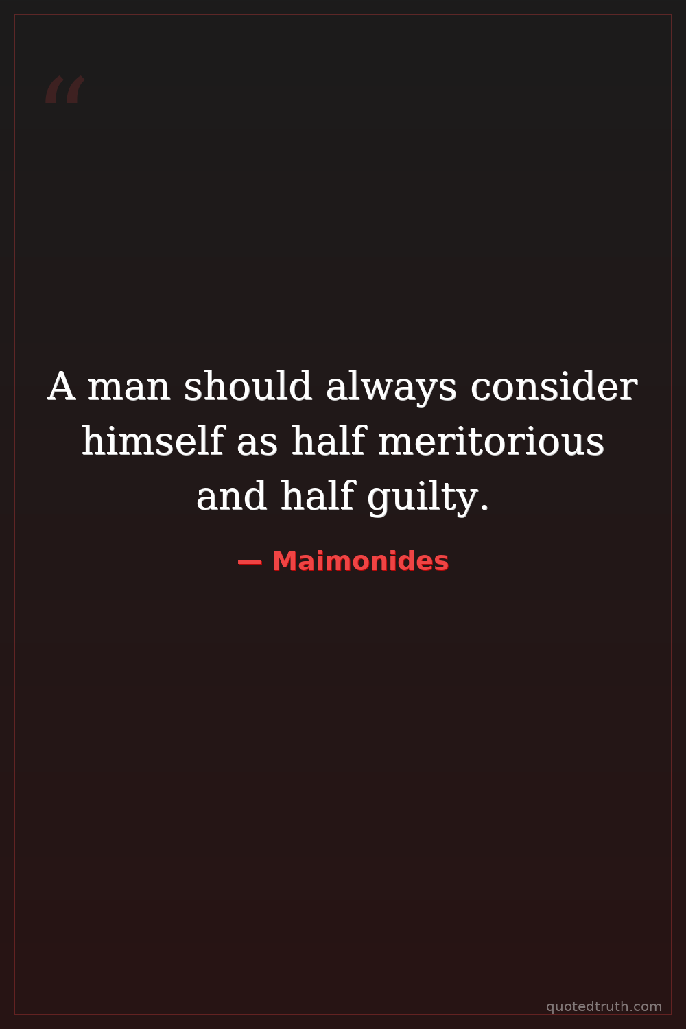 A man should always consider himself as half meritorious and half guilty.