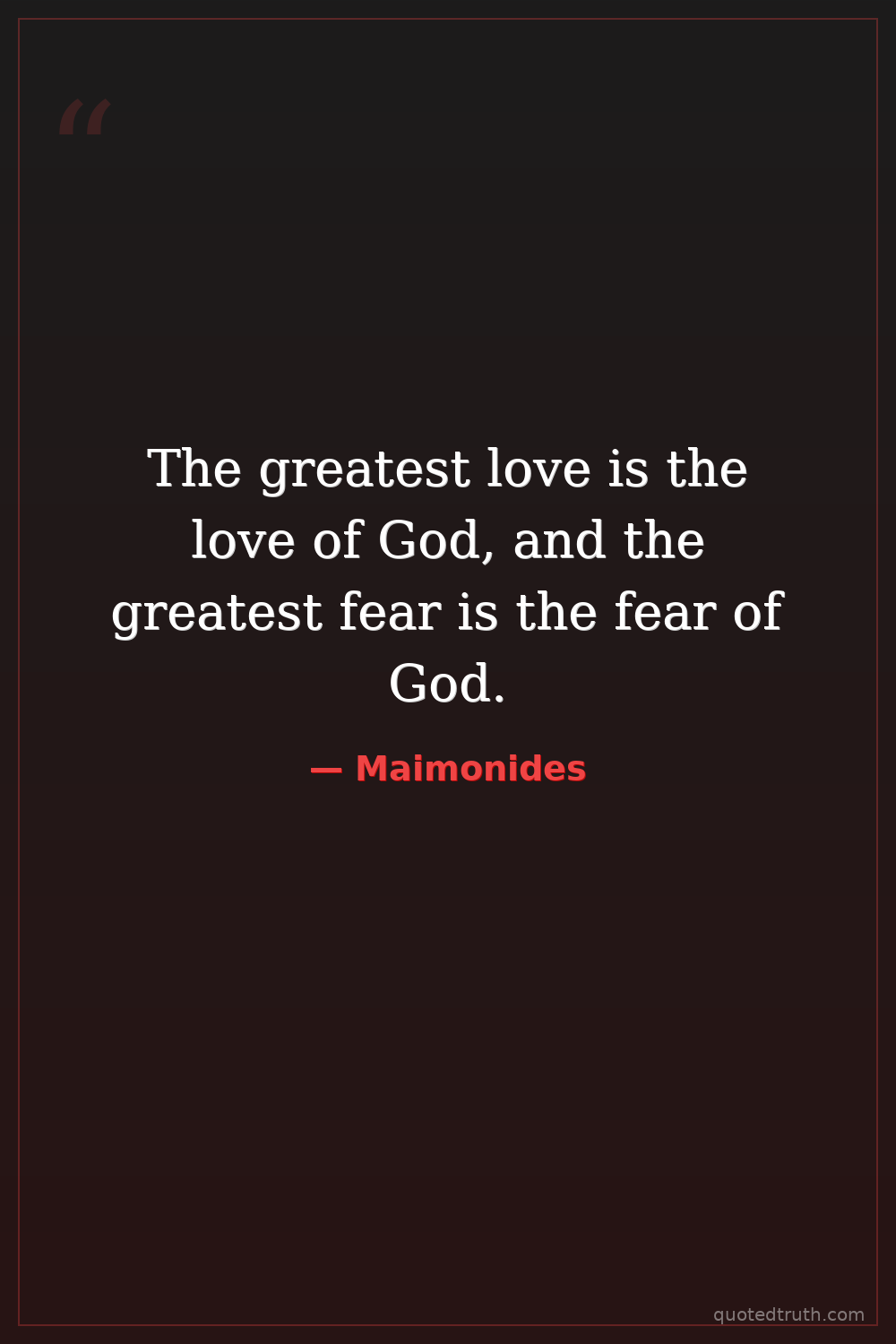 The greatest love is the love of God, and the greatest fear is the fear of God.