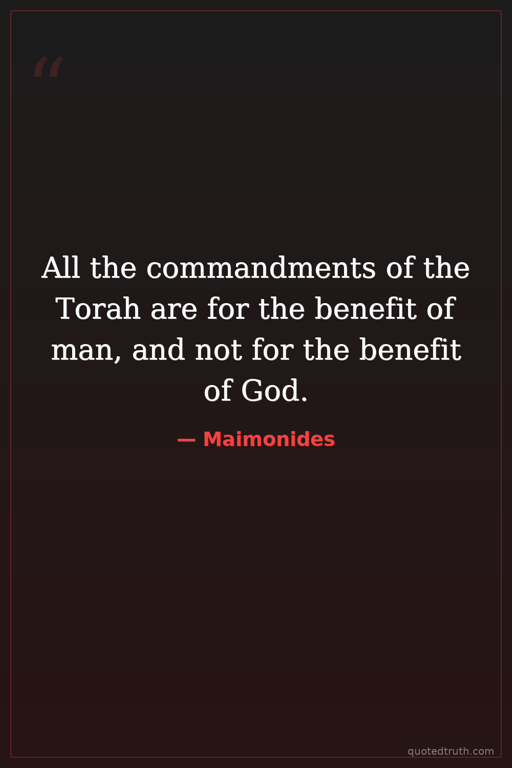 All the commandments of the Torah are for the benefit of man, and not for the benefit of God.
