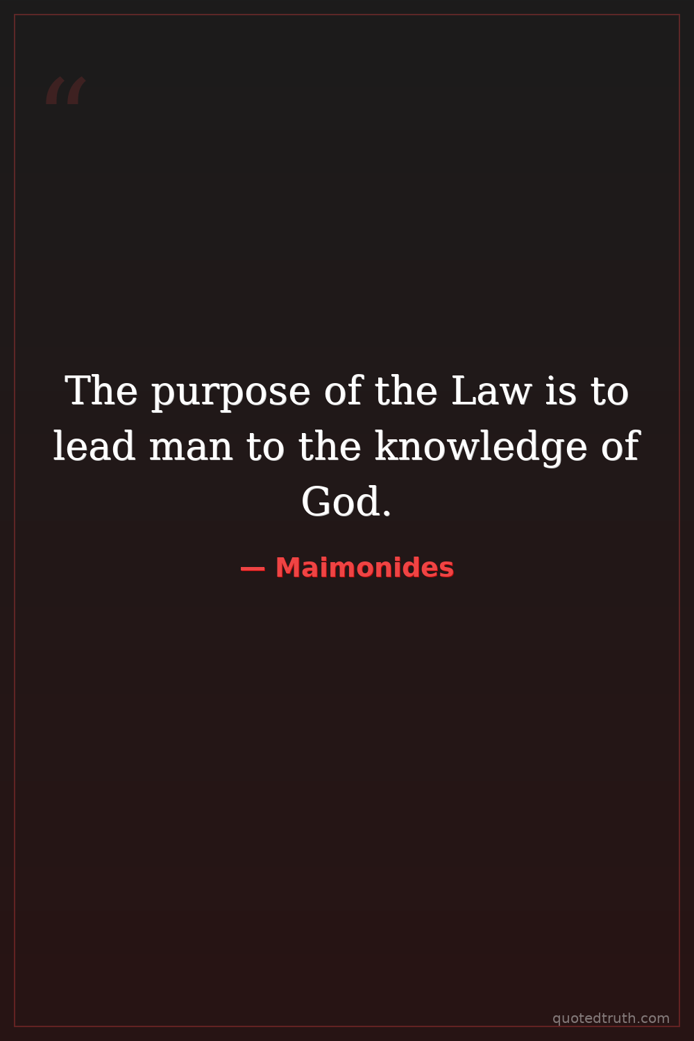 The purpose of the Law is to lead man to the knowledge of God.