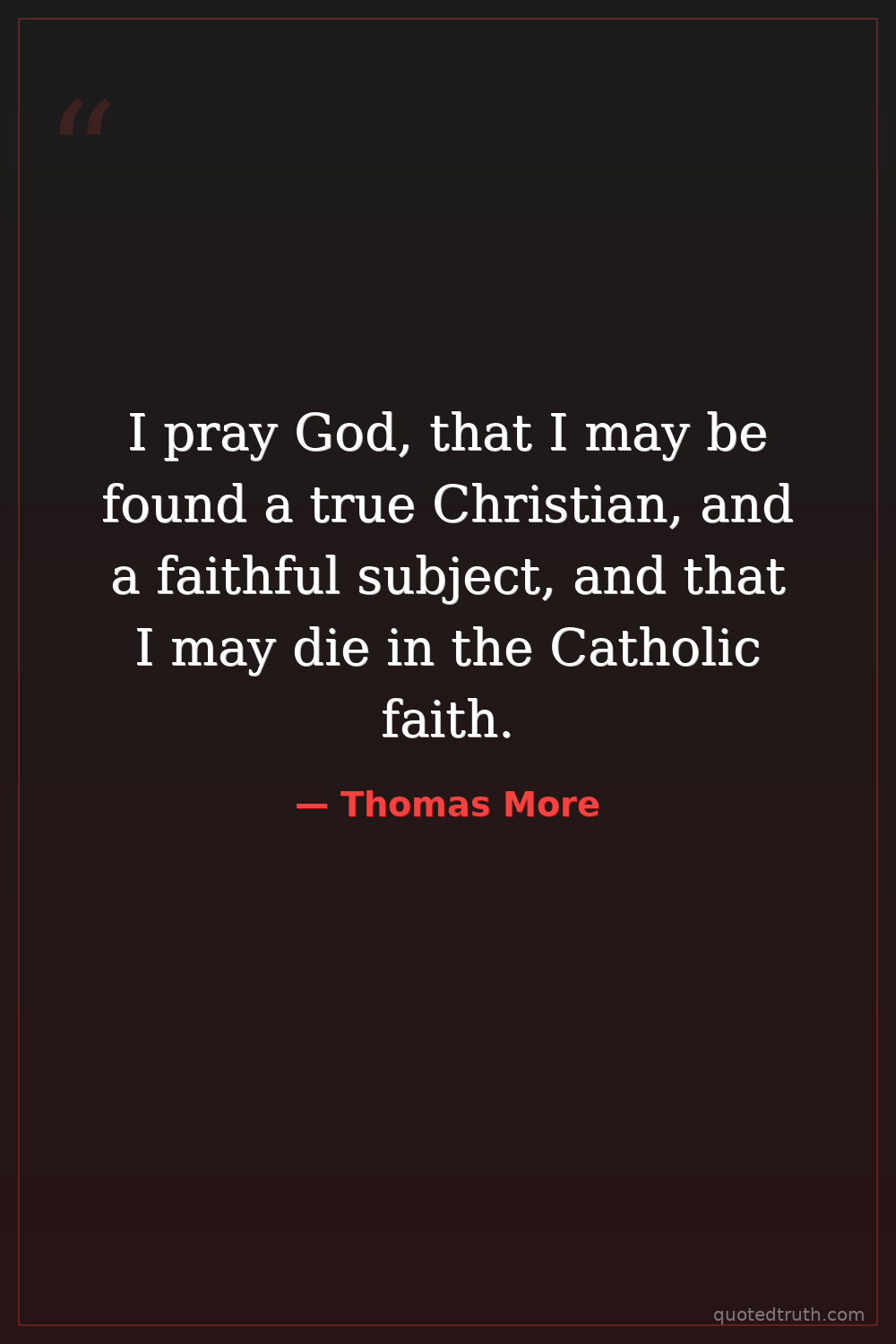 I pray God, that I may be found a true Christian, and a faithful subject, and that I may die in the Catholic faith.