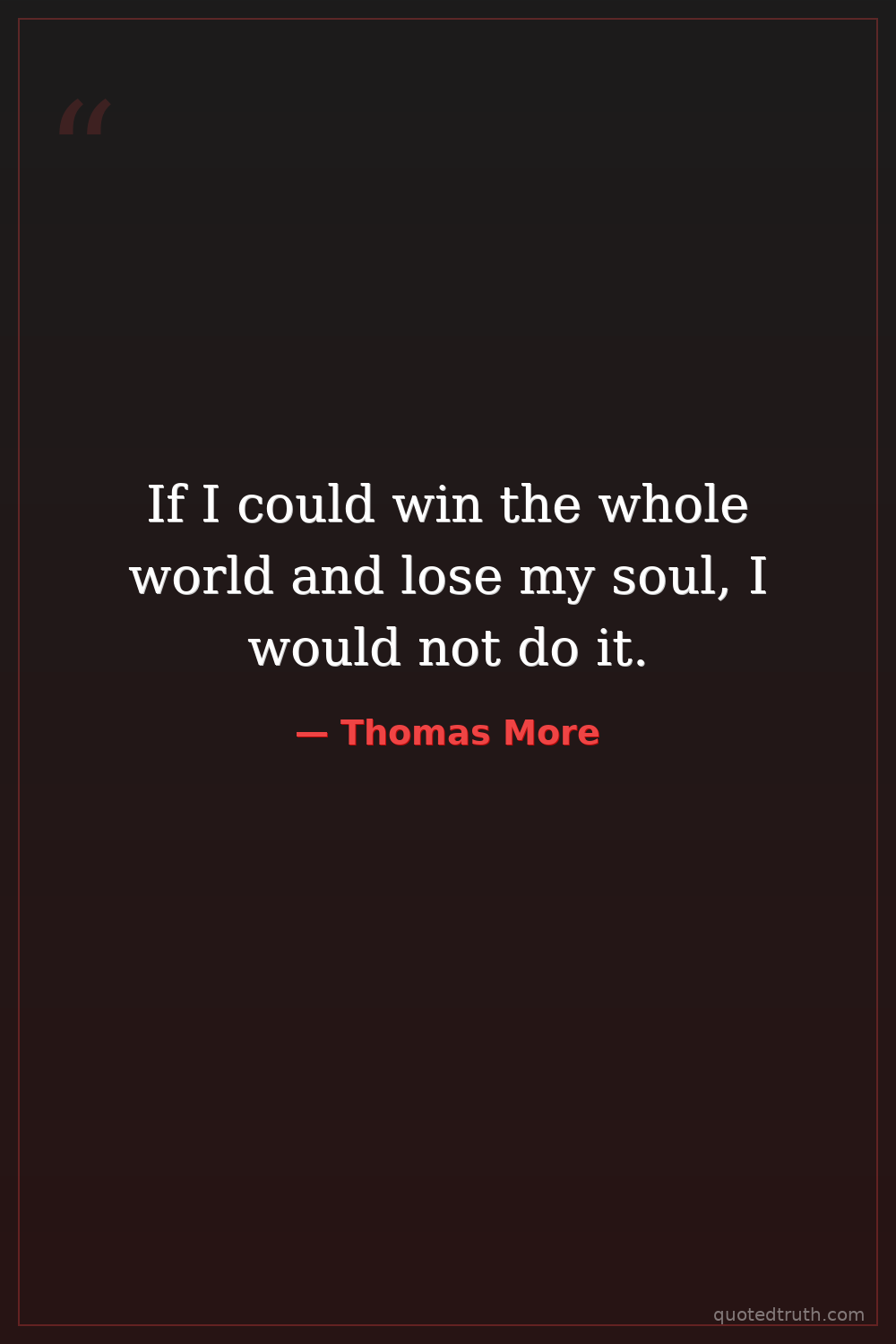 If I could win the whole world and lose my soul, I would not do it.