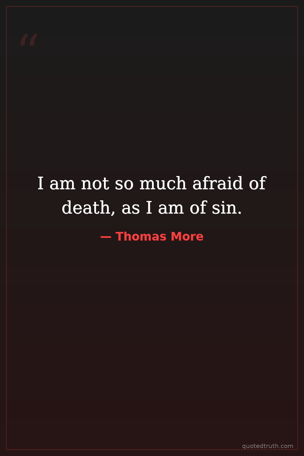 I am not so much afraid of death, as I am of sin.