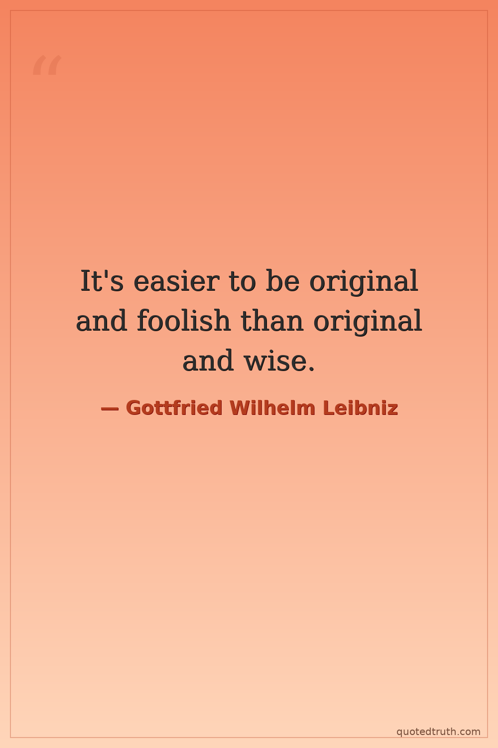 It's easier to be original and foolish than original and wise.