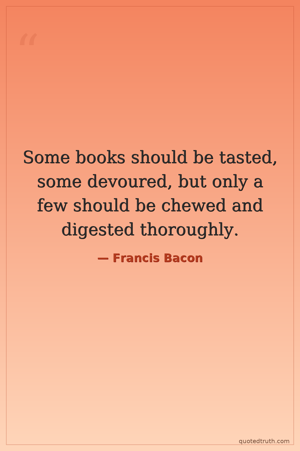 Some books should be tasted, some devoured, but only a few should be chewed and digested thoroughly.