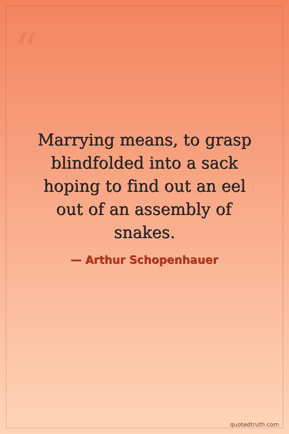 Marrying means, to grasp blindfolded into a sack hoping to find out an eel out of an assembly of snakes.
