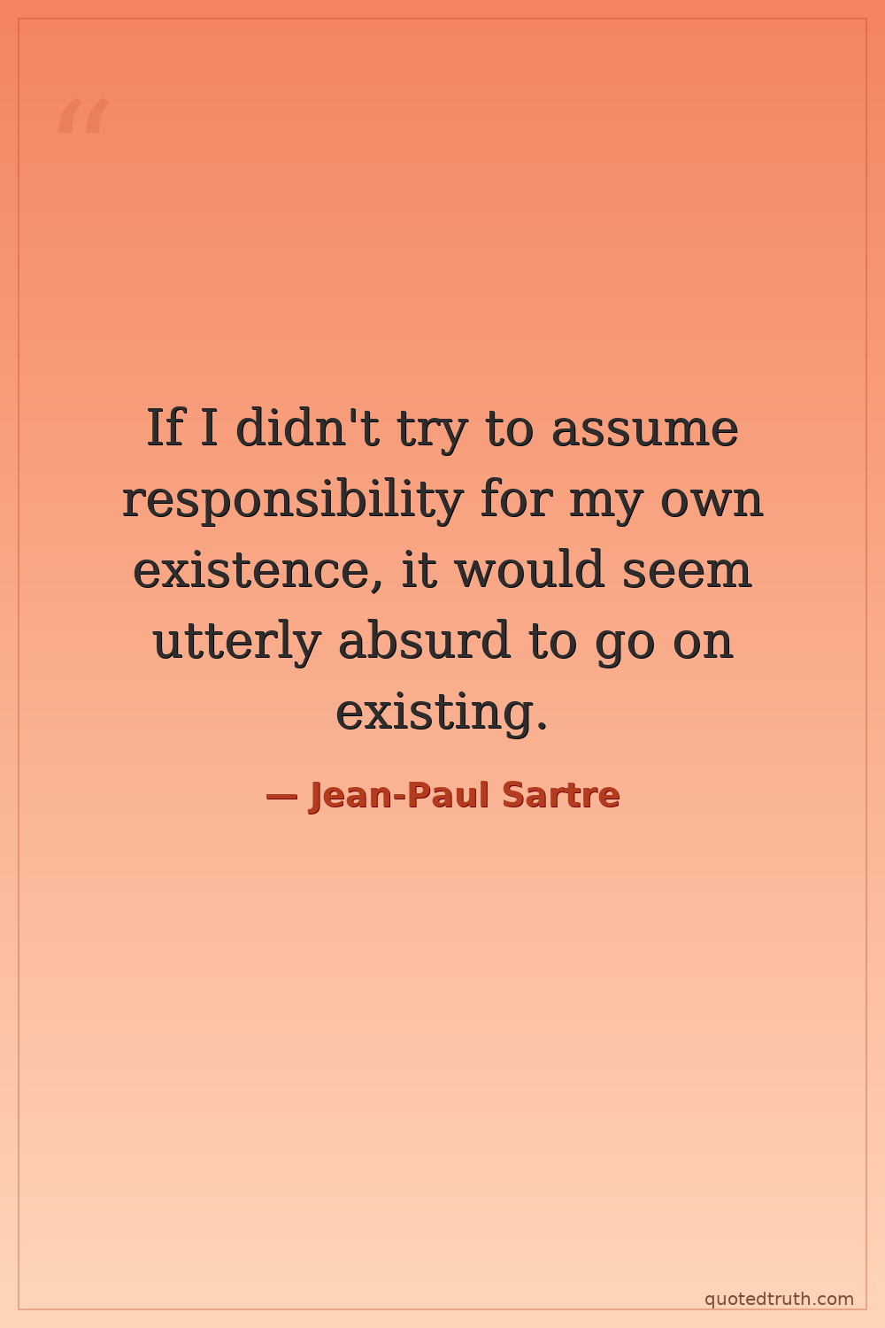 If I didn't try to assume responsibility for my own existence, it would seem utterly absurd to go on existing.