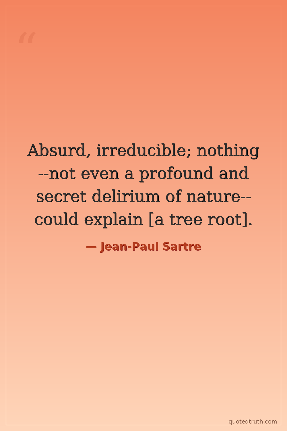 Absurd, irreducible; nothing--not even a profound and secret delirium of nature--could explain [a tree root].