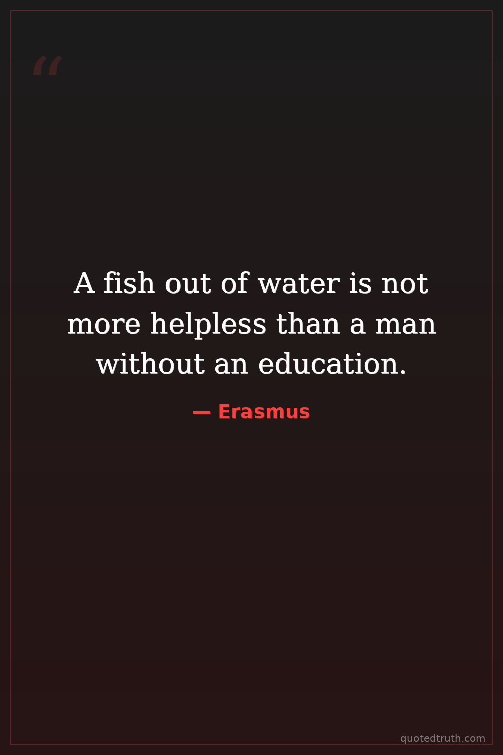 A fish out of water is not more helpless than a man without an education.