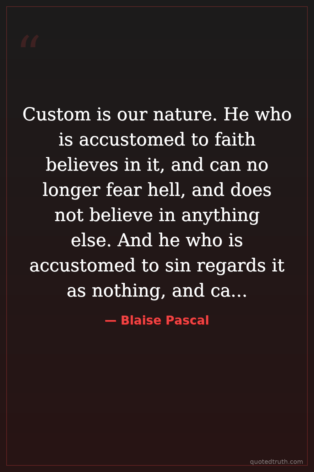 Custom is our nature. He who is accustomed to faith believes in it, and can no longer fear hell, and does not believe in anything else. And he who is accustomed to sin regards it as nothing, and can no longer fear hell.