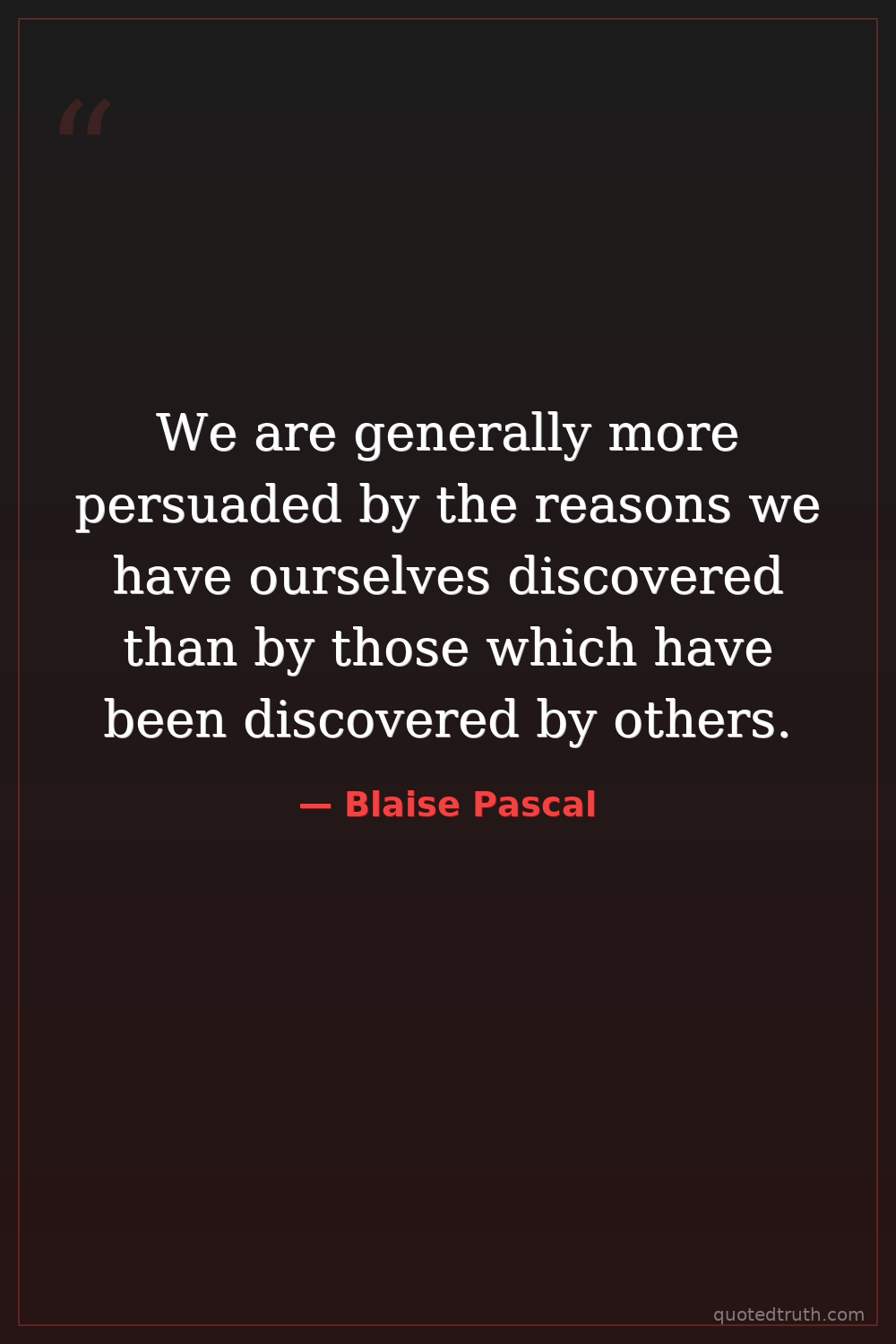 We are generally more persuaded by the reasons we have ourselves discovered than by those which have been discovered by others.