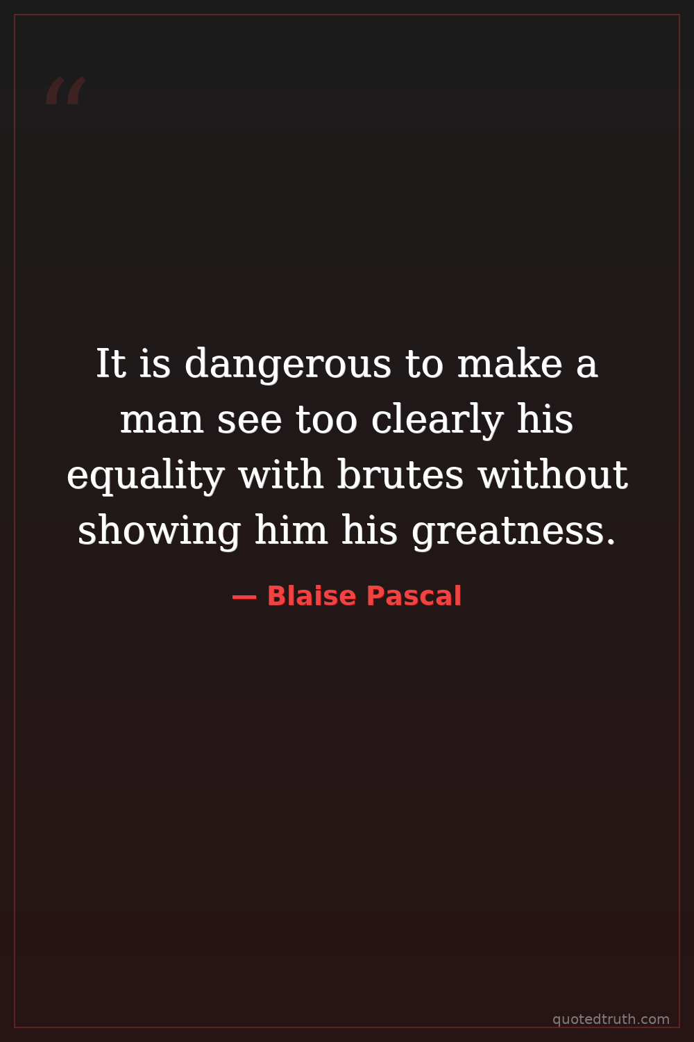 It is dangerous to make a man see too clearly his equality with brutes without showing him his greatness.