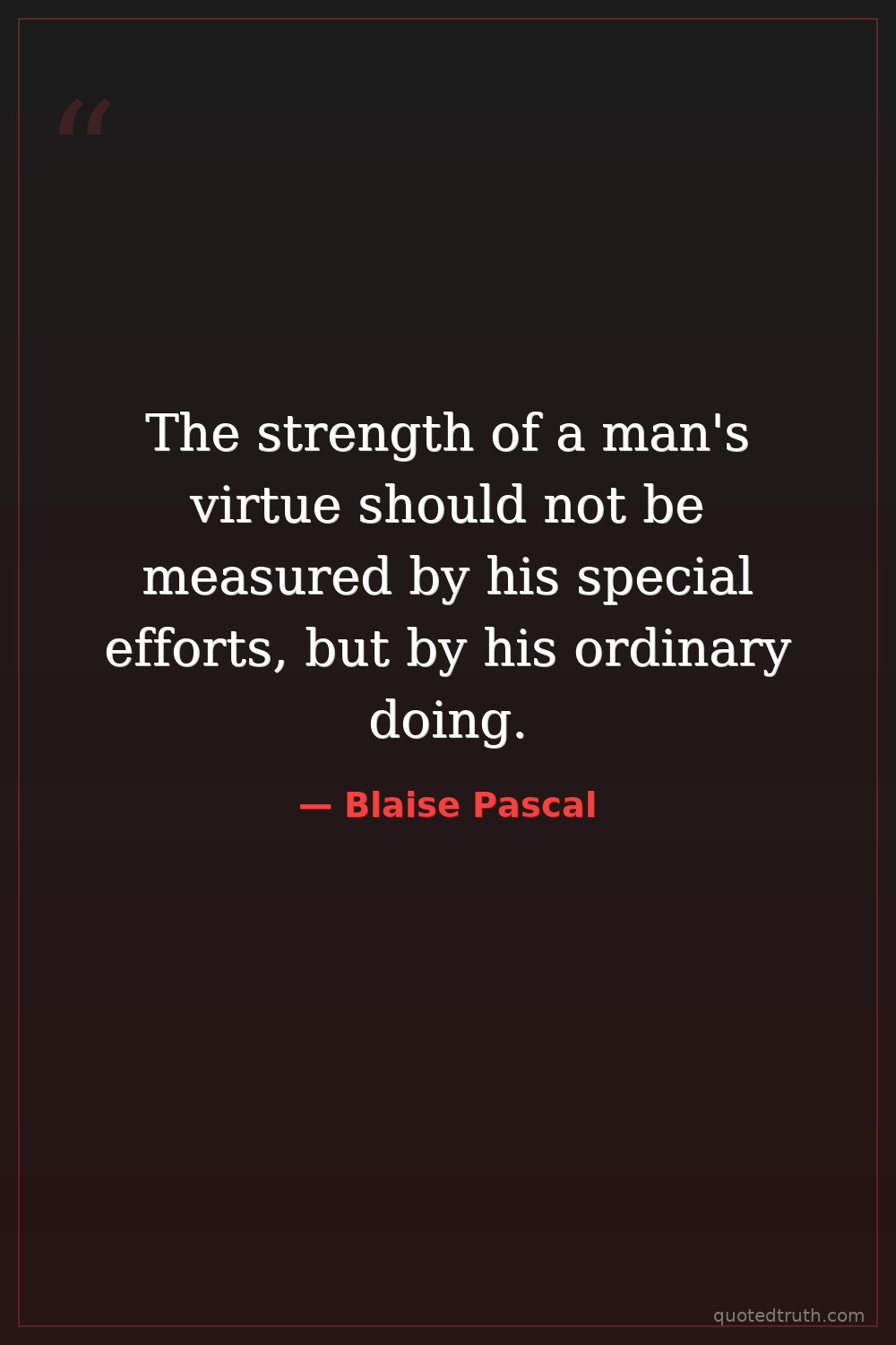 The strength of a man's virtue should not be measured by his special efforts, but by his ordinary doing.