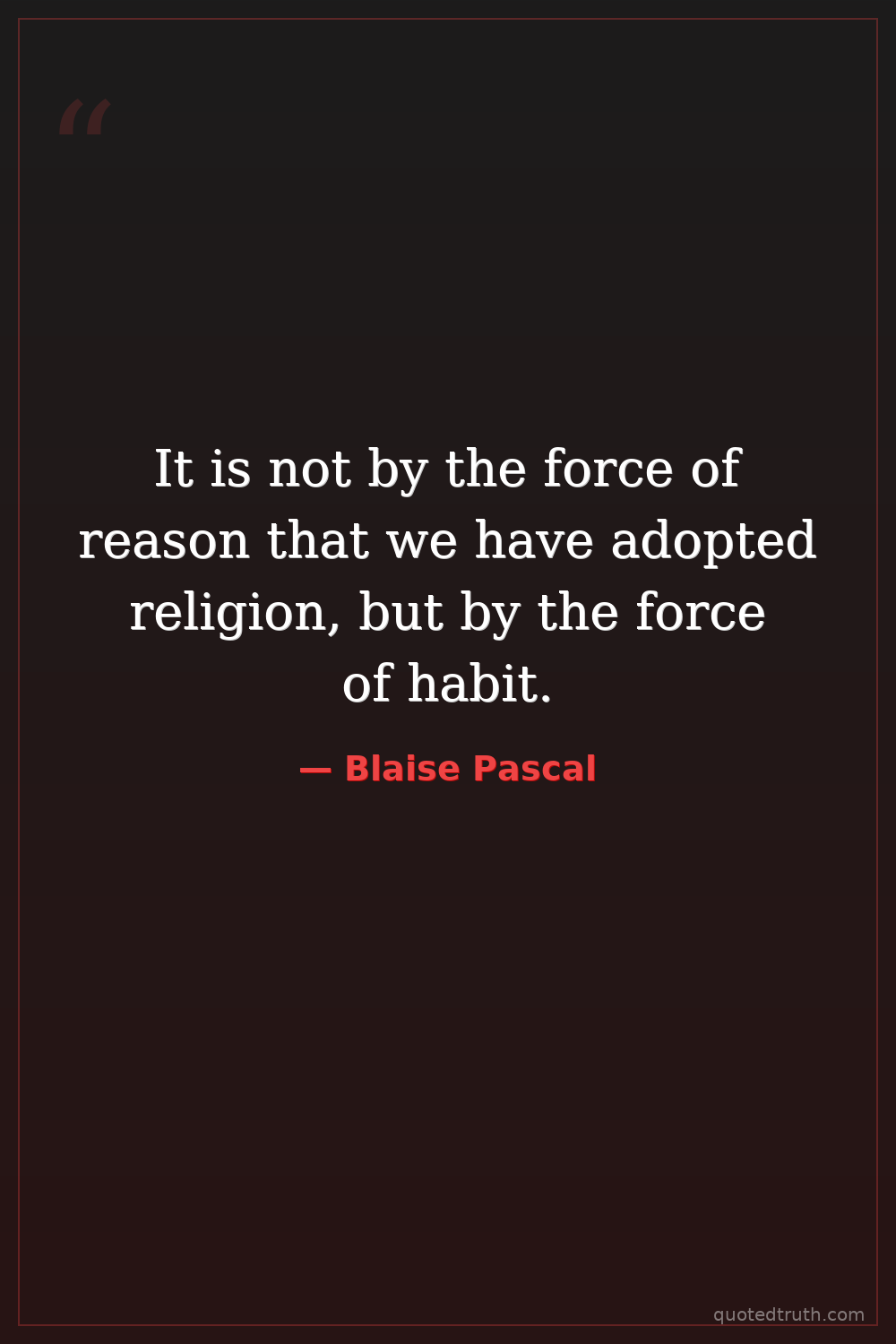 It is not by the force of reason that we have adopted religion, but by the force of habit.