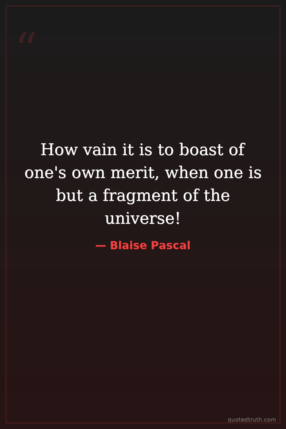 How vain it is to boast of one's own merit, when one is but a fragment of the universe!