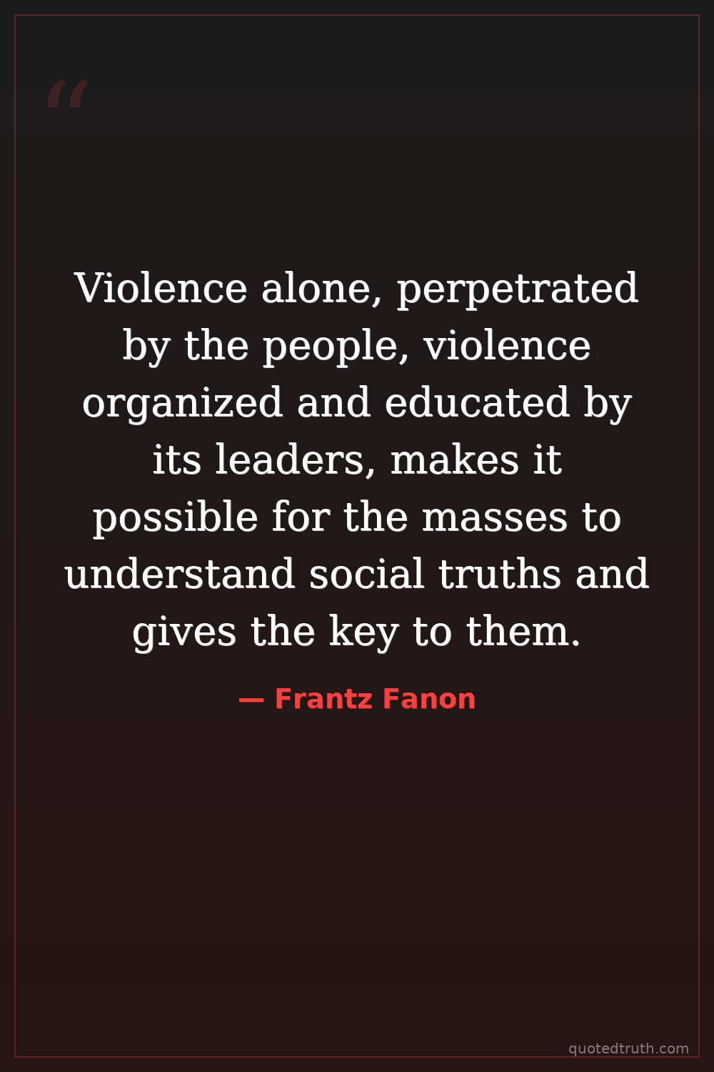 Violence alone, perpetrated by the people, violence organized and educated by its leaders, makes it possible for the masses to understand social truths and gives the key to them.