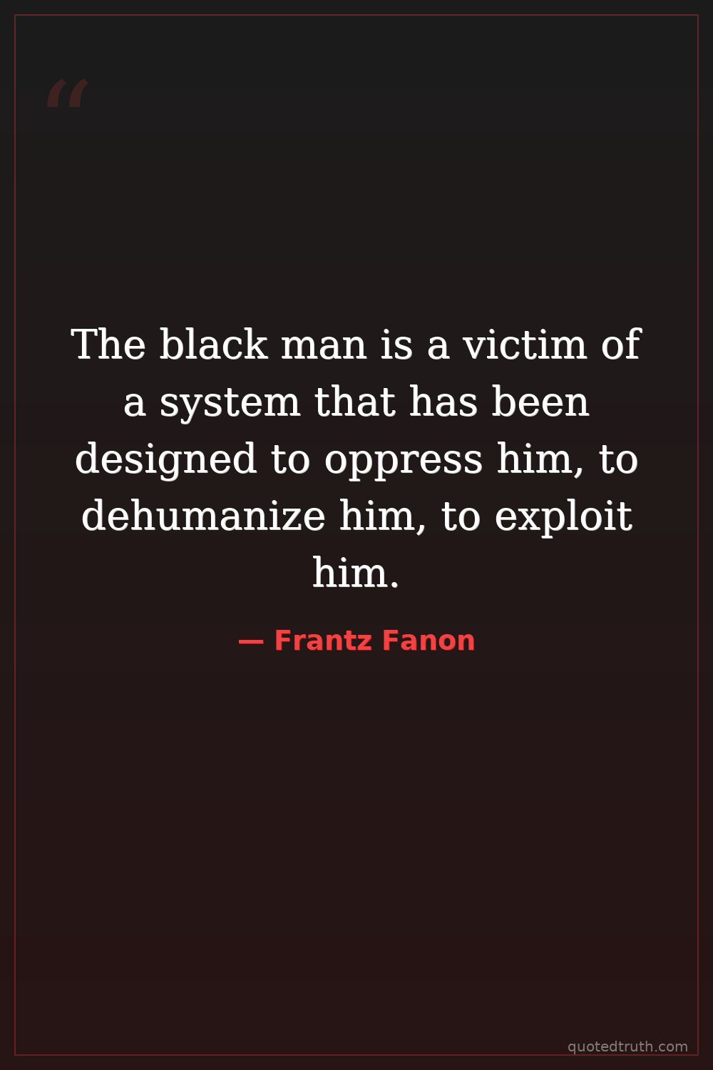 The black man is a victim of a system that has been designed to oppress him, to dehumanize him, to exploit him.