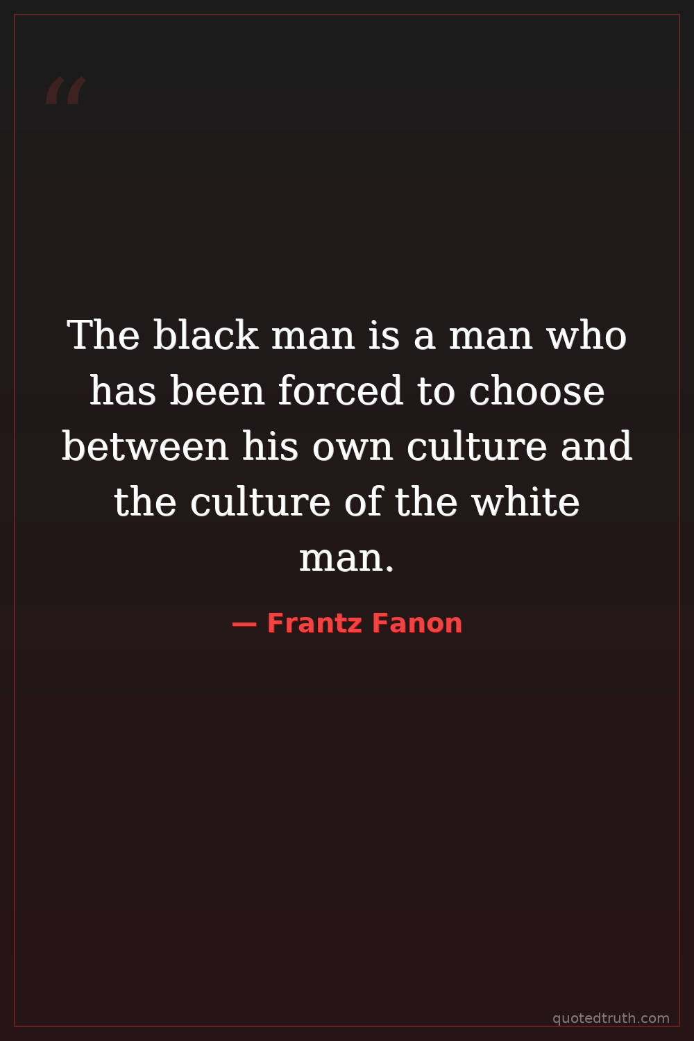 The black man is a man who has been forced to choose between his own culture and the culture of the white man.