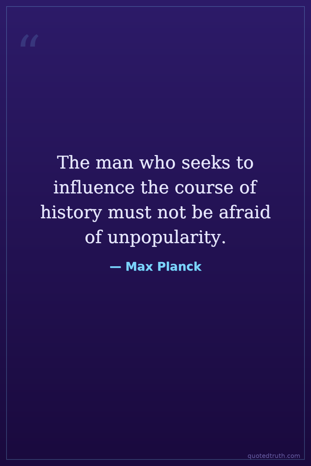 The man who seeks to influence the course of history must not be afraid of unpopularity.
