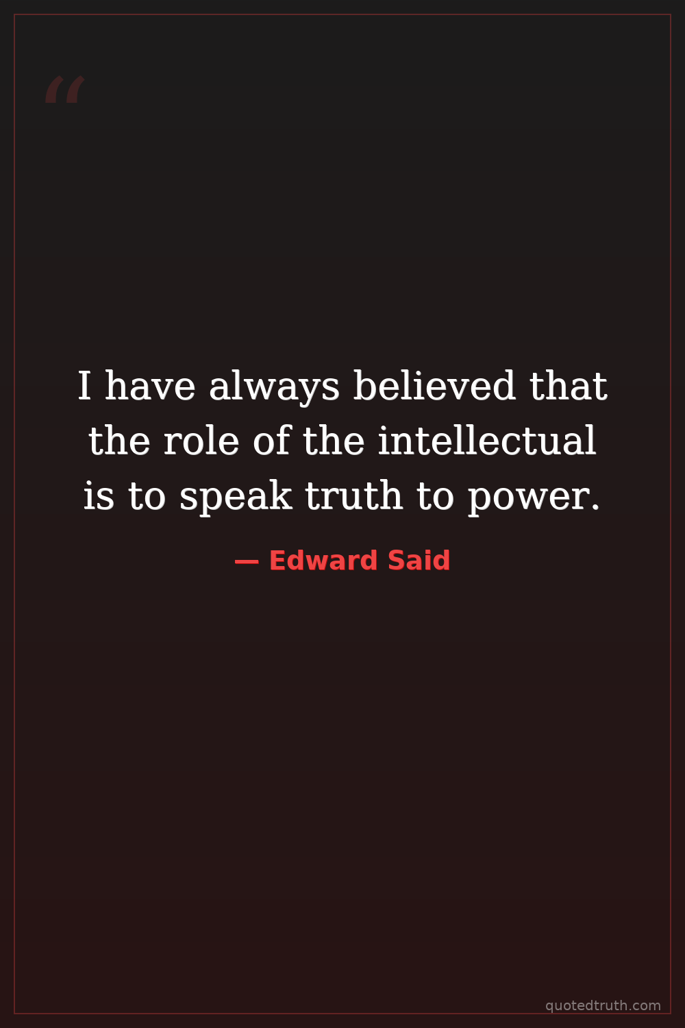 I have always believed that the role of the intellectual is to speak truth to power.