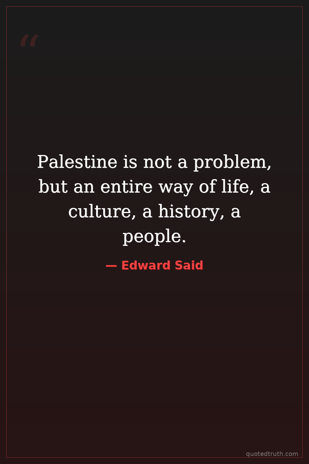 Palestine is not a problem, but an entire way of life, a culture, a history, a people.