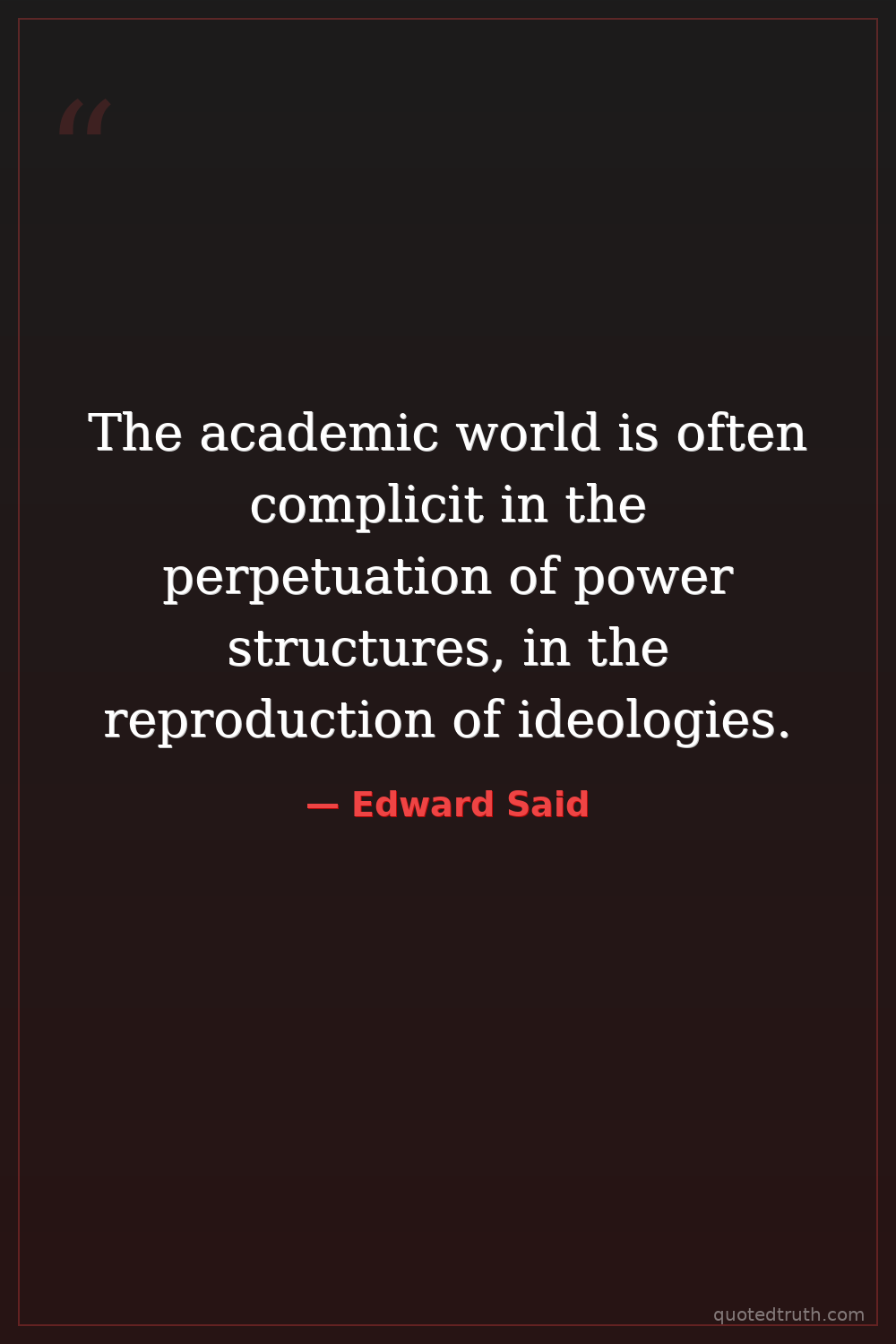 The academic world is often complicit in the perpetuation of power structures, in the reproduction of ideologies.