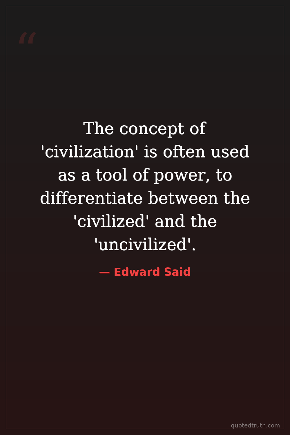 The concept of 'civilization' is often used as a tool of power, to differentiate between the 'civilized' and the 'uncivilized'.