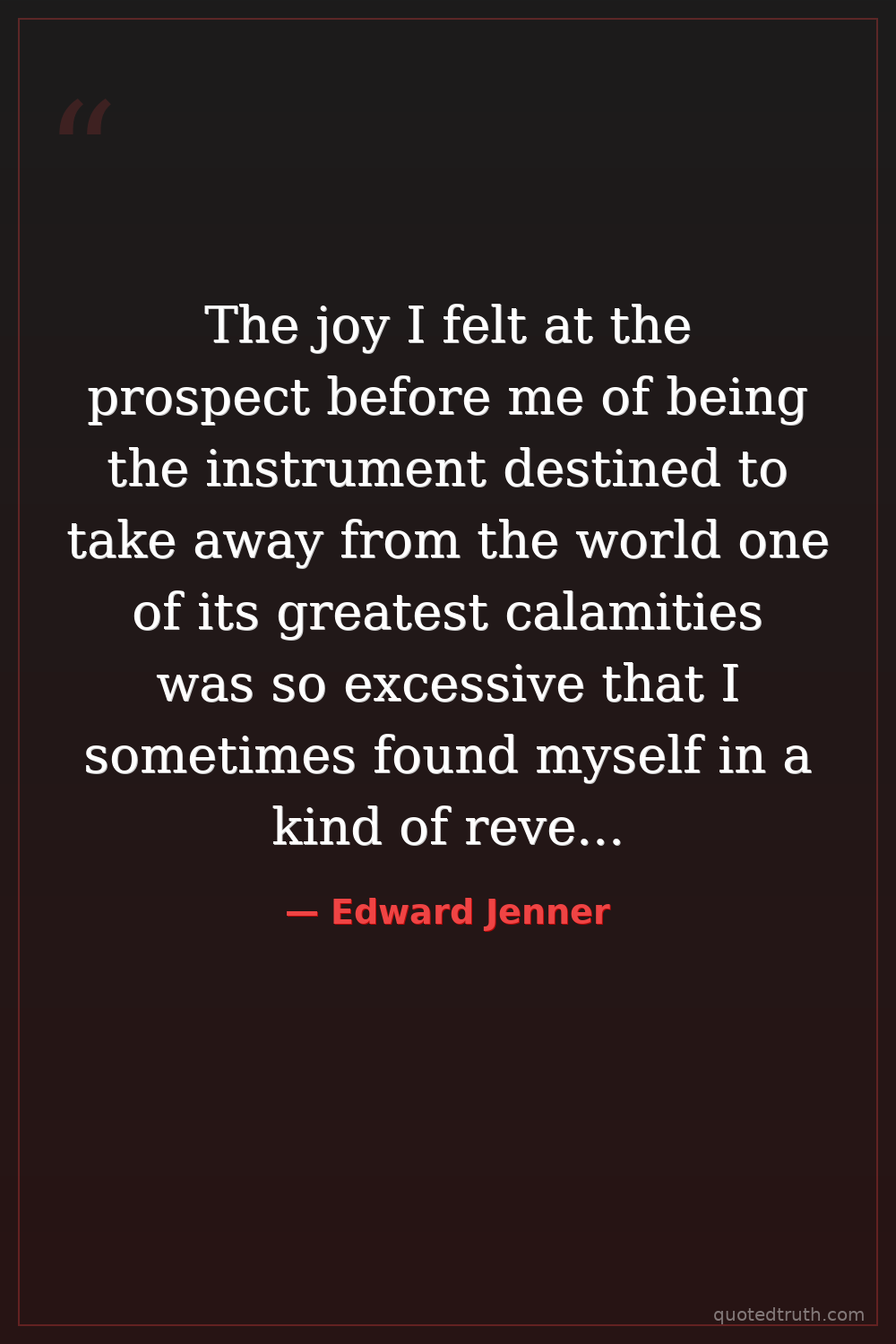 The joy I felt at the prospect before me of being the instrument destined to take away from the world one of its greatest calamities was so excessive that I sometimes found myself in a kind of reverie.