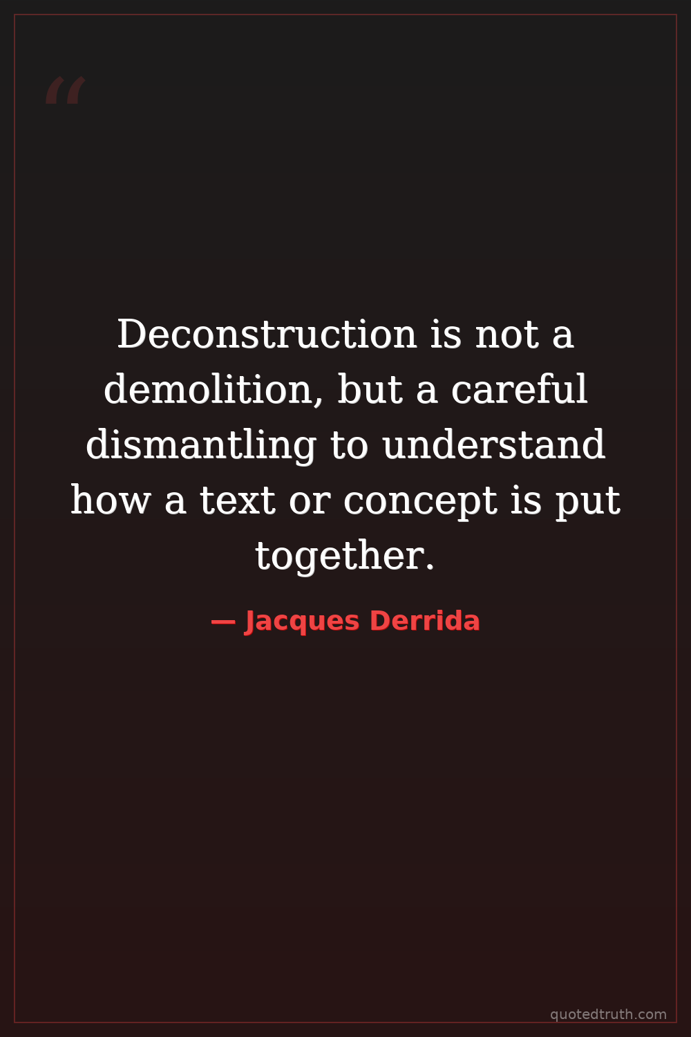 Deconstruction is not a demolition, but a careful dismantling to understand how a text or concept is put together.