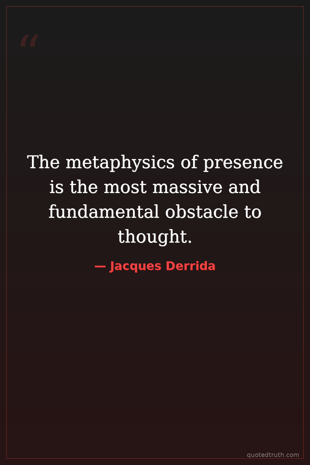 The metaphysics of presence is the most massive and fundamental obstacle to thought.