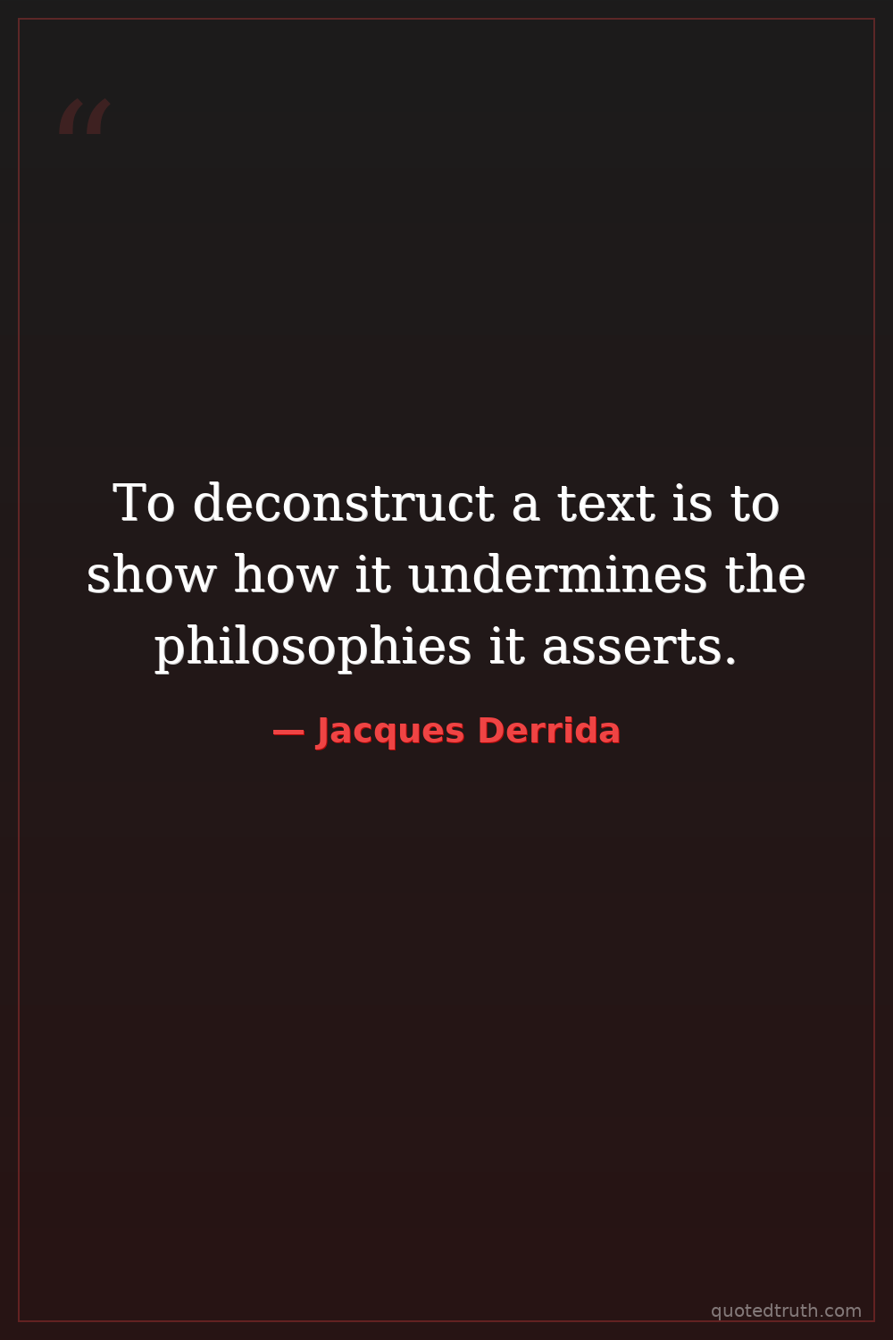 To deconstruct a text is to show how it undermines the philosophies it asserts.