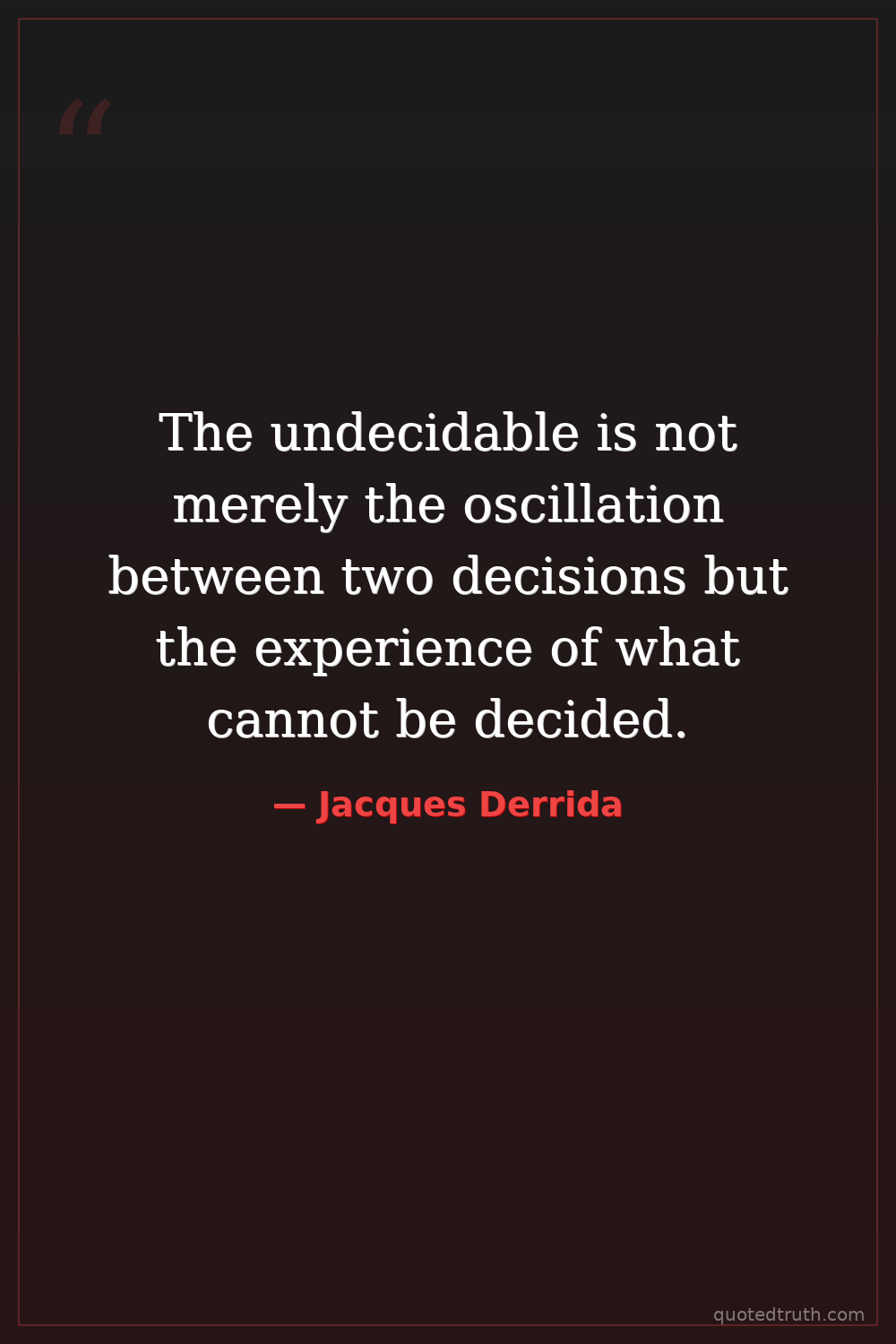 The undecidable is not merely the oscillation between two decisions but the experience of what cannot be decided.