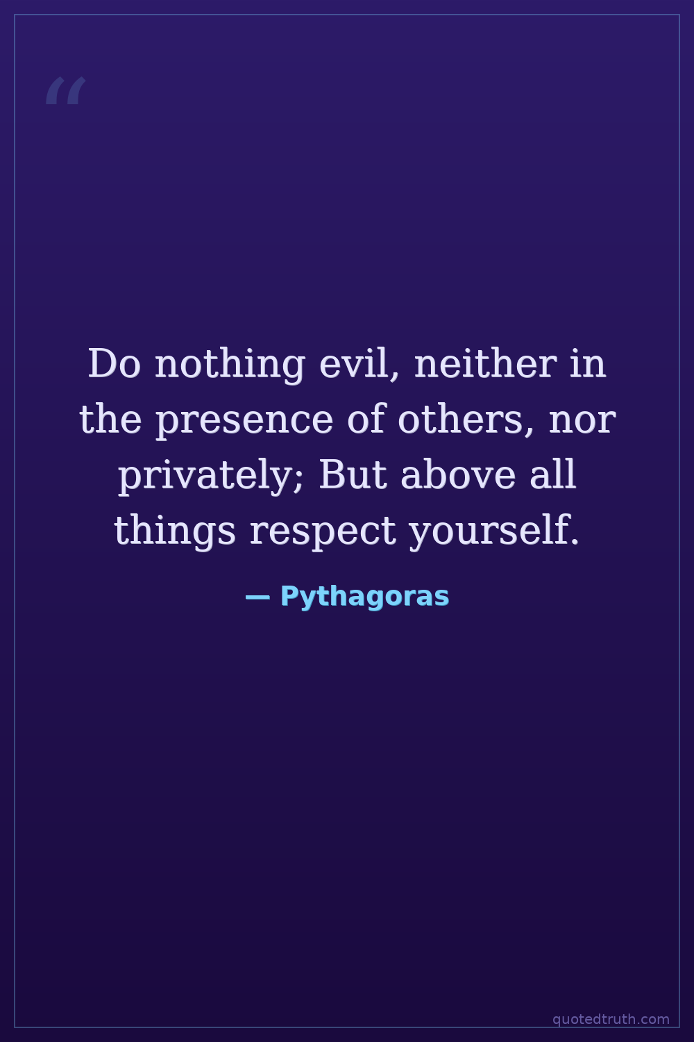 Do nothing evil, neither in the presence of others, nor privately; But above all things respect yourself.