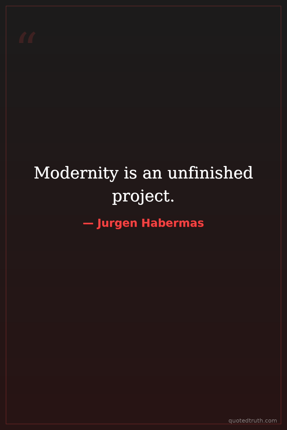 Modernity is an unfinished project.