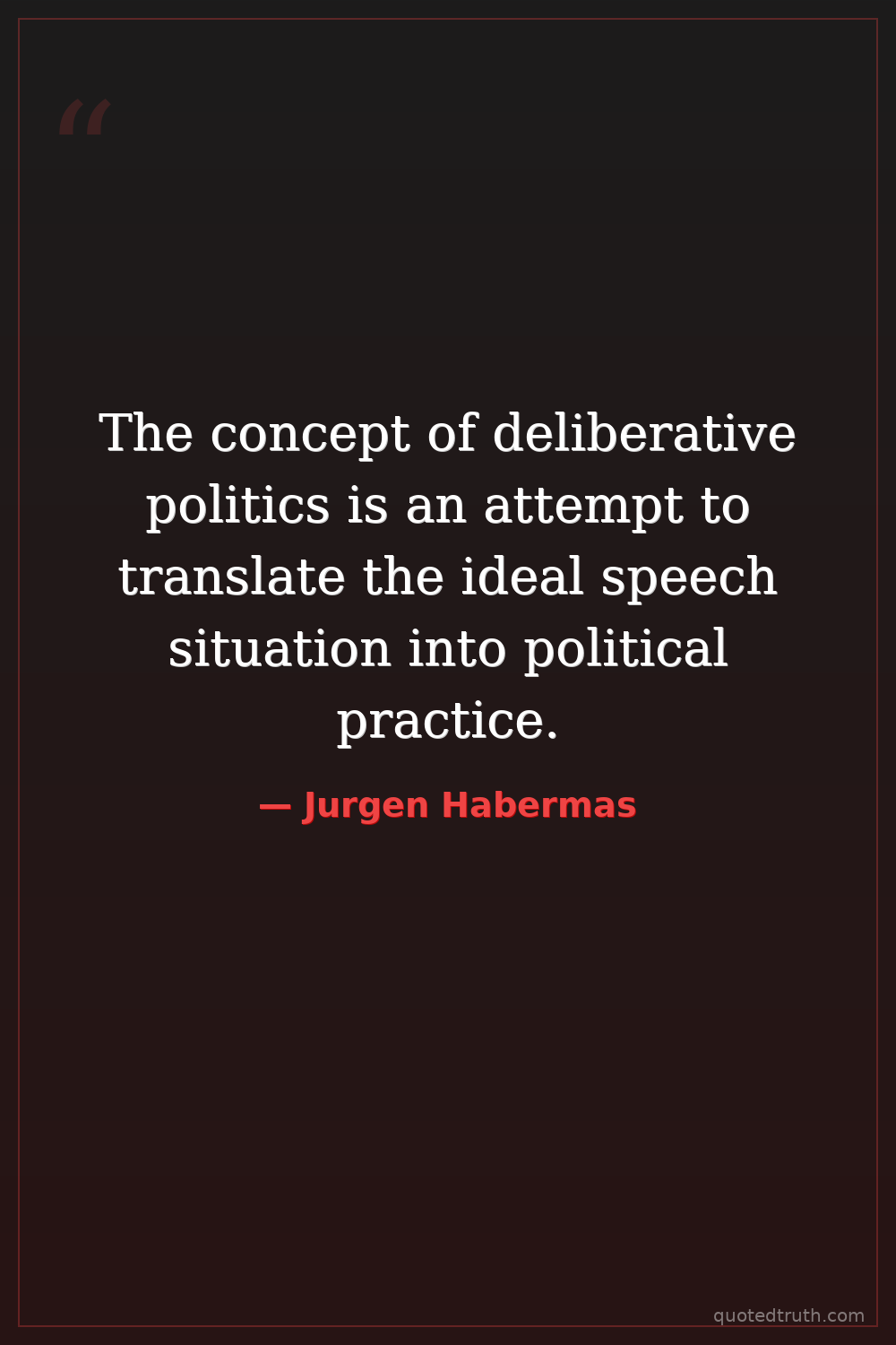 The concept of deliberative politics is an attempt to translate the ideal speech situation into political practice.