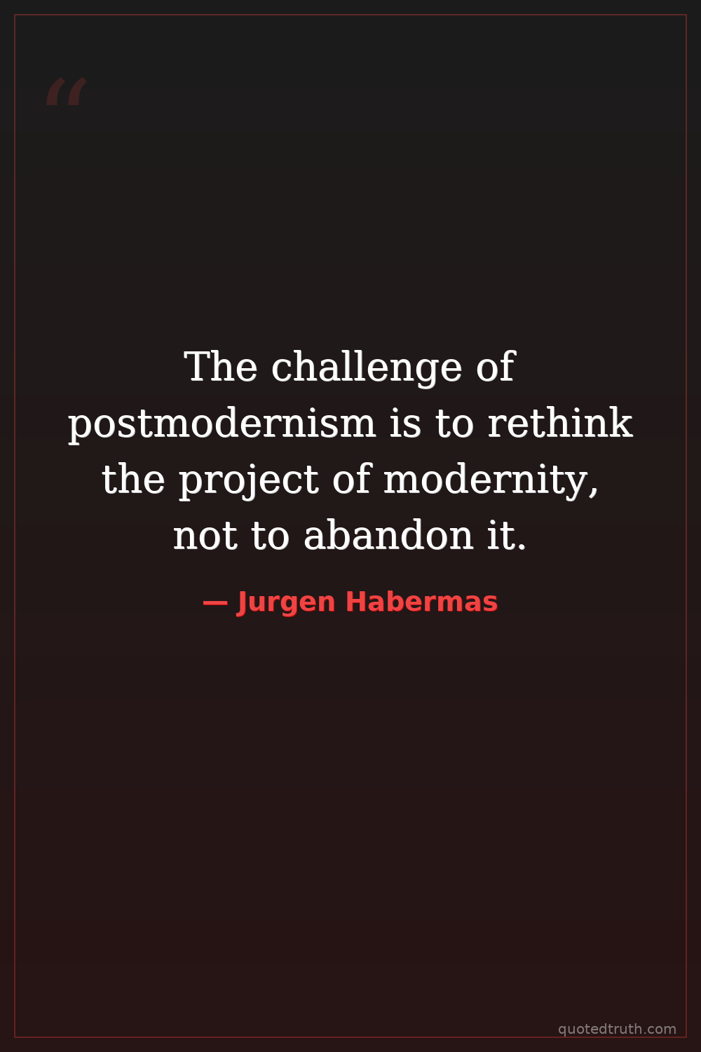 The challenge of postmodernism is to rethink the project of modernity, not to abandon it.
