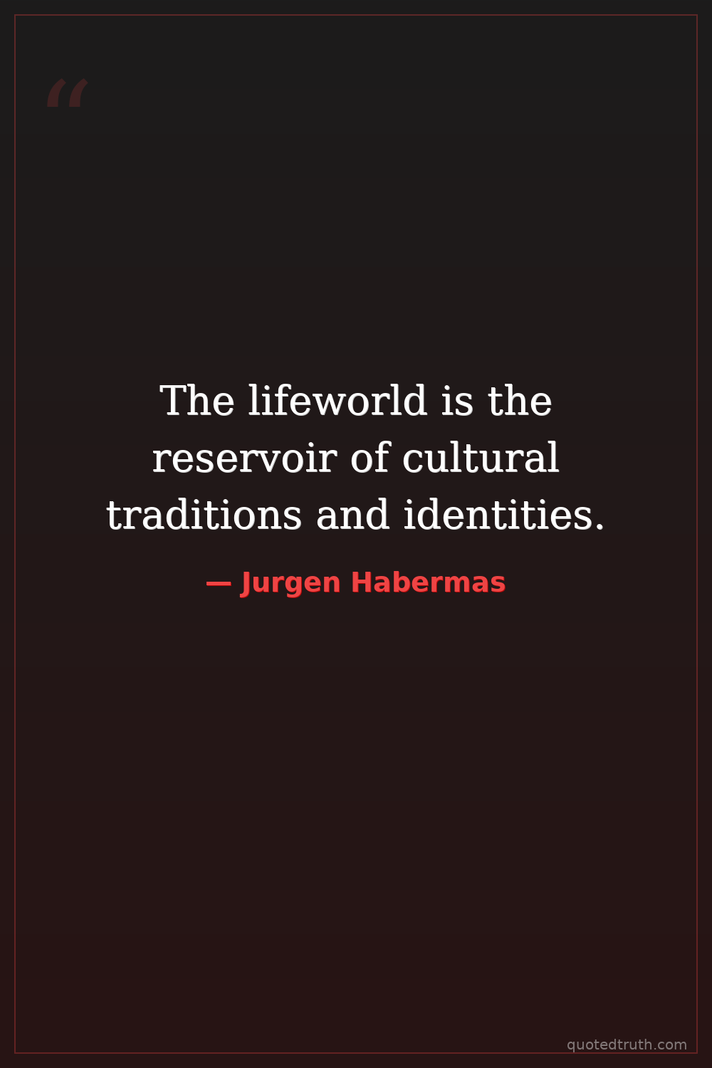 The lifeworld is the reservoir of cultural traditions and identities.
