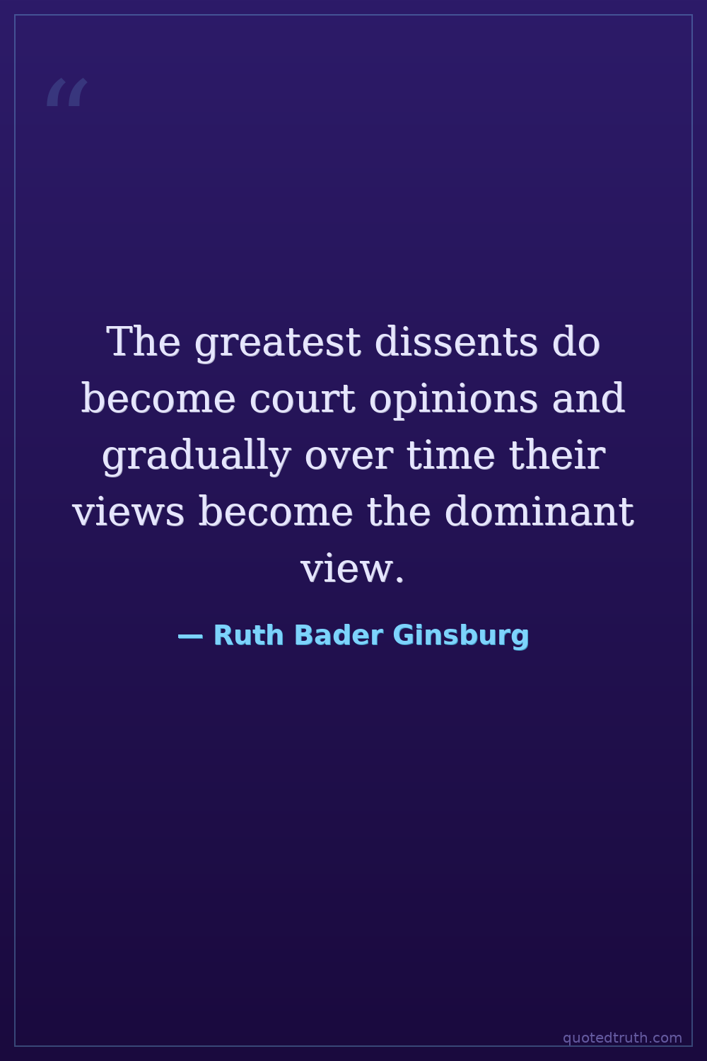 The greatest dissents do become court opinions and gradually over time their views become the dominant view.