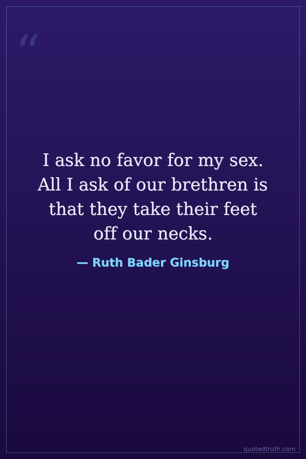 I ask no favor for my sex. All I ask of our brethren is that they take their feet off our necks.