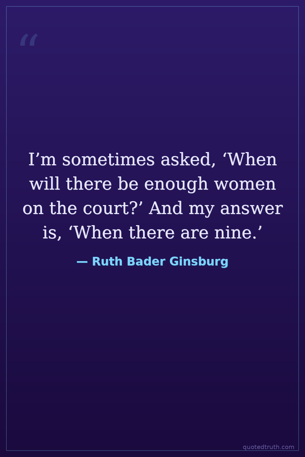 I’m sometimes asked, ‘When will there be enough women on the court?’ And my answer is, ‘When there are nine.’
