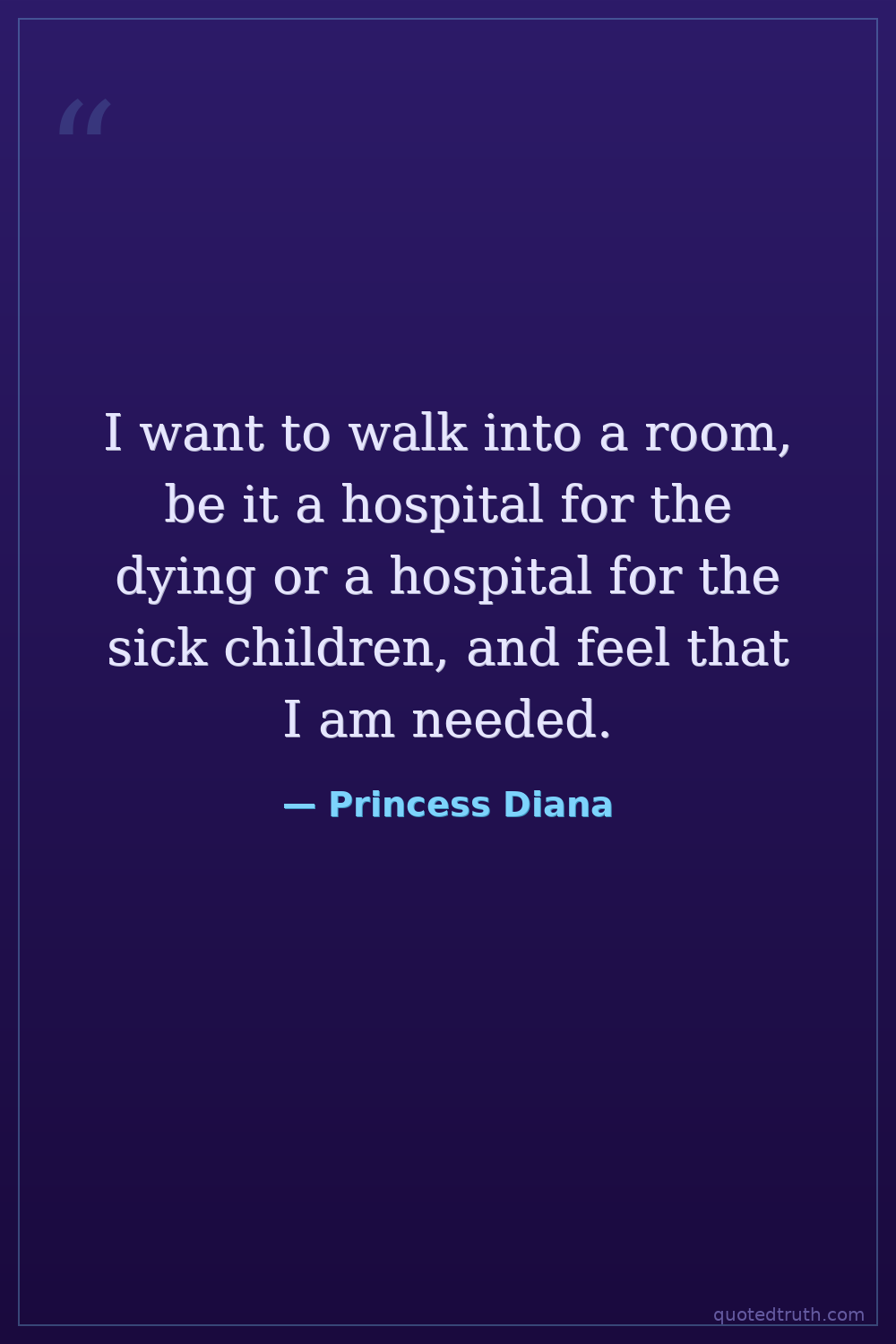 I want to walk into a room, be it a hospital for the dying or a hospital for the sick children, and feel that I am needed.