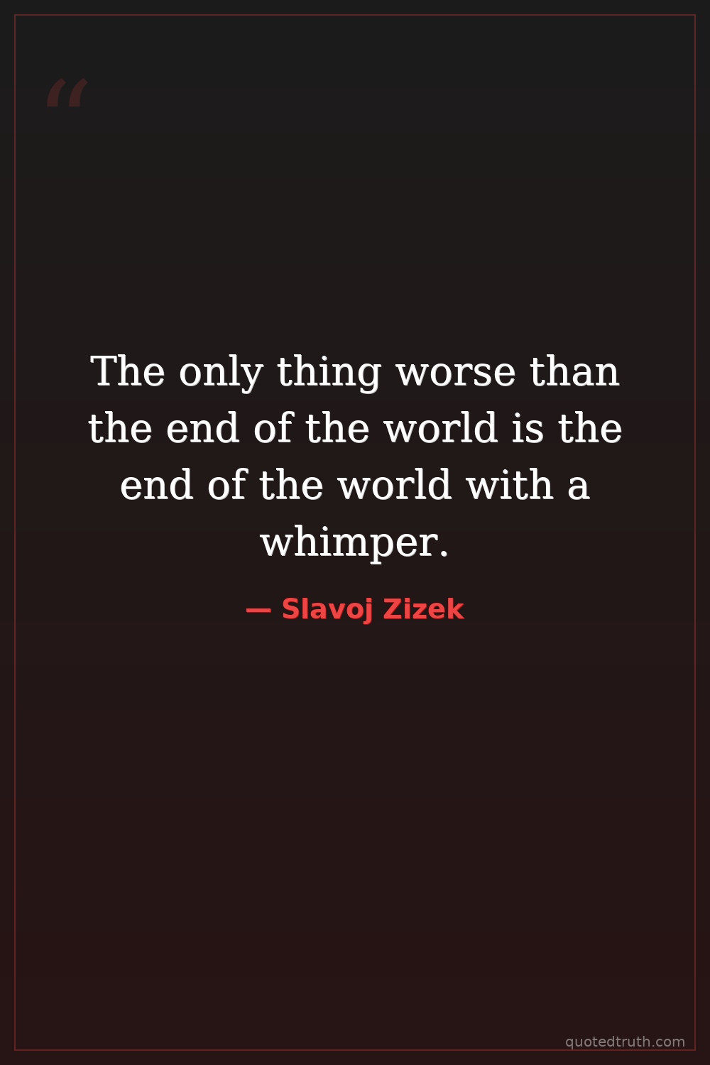 The only thing worse than the end of the world is the end of the world with a whimper.