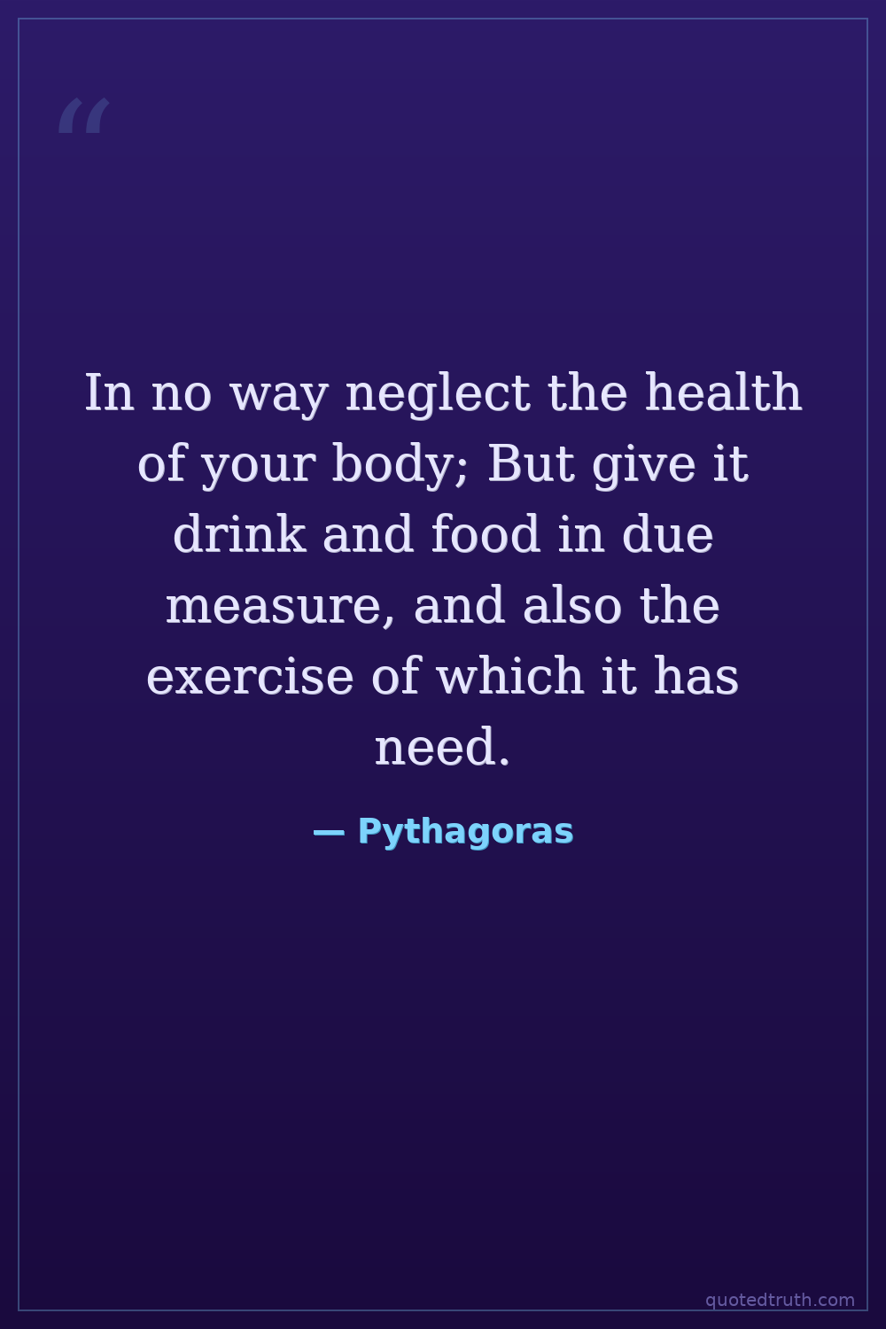 In no way neglect the health of your body; But give it drink and food in due measure, and also the exercise of which it has need.