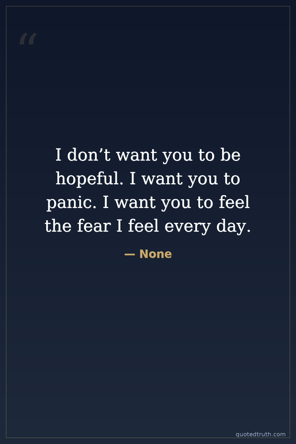 I don’t want you to be hopeful. I want you to panic. I want you to feel the fear I feel every day.