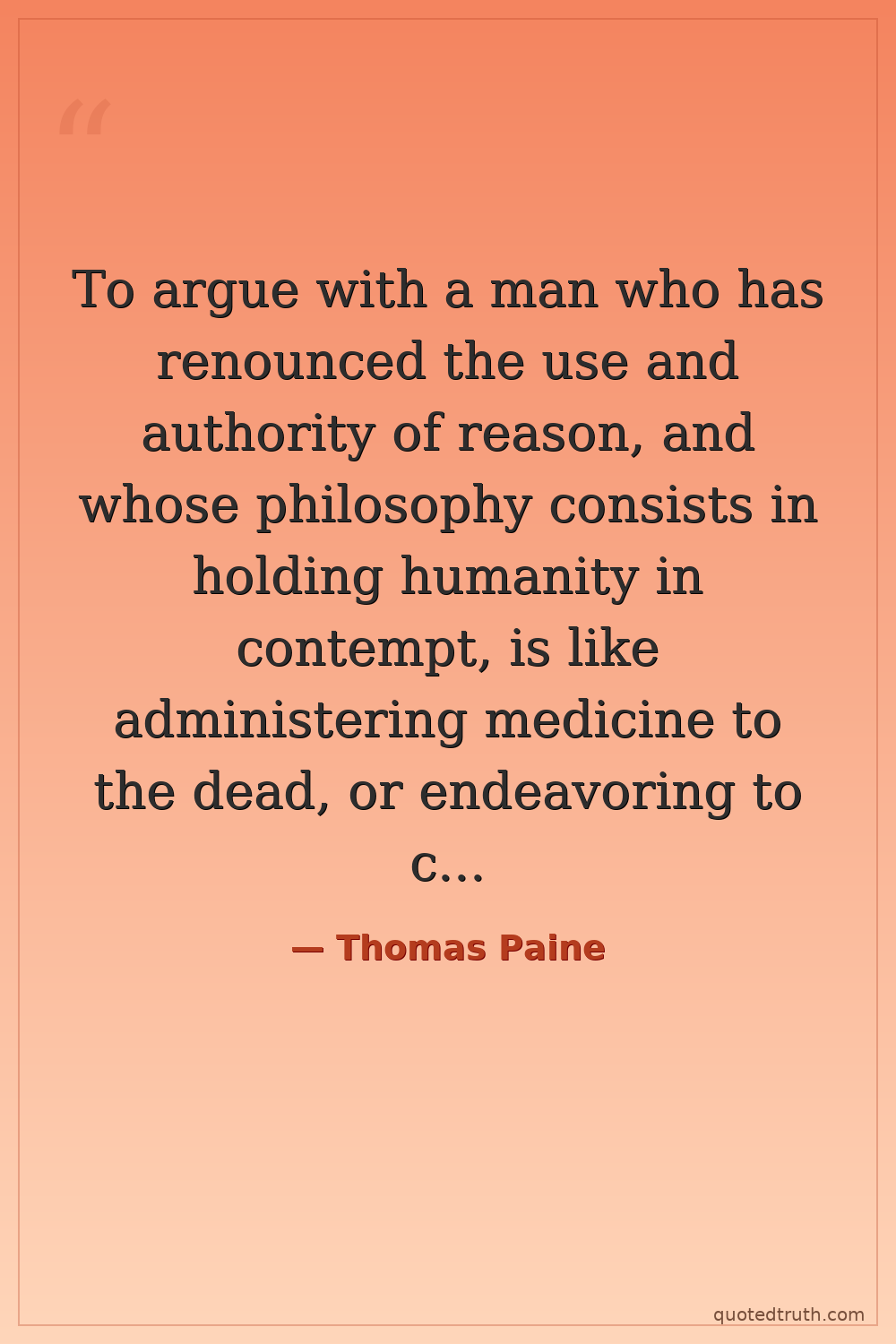 To argue with a man who has renounced the use and authority of reason, and whose philosophy consists in holding humanity in contempt, is like administering medicine to the dead, or endeavoring to convert an atheist by scripture. — Thomas Paine Early Modern Common Sense, Rights of Man