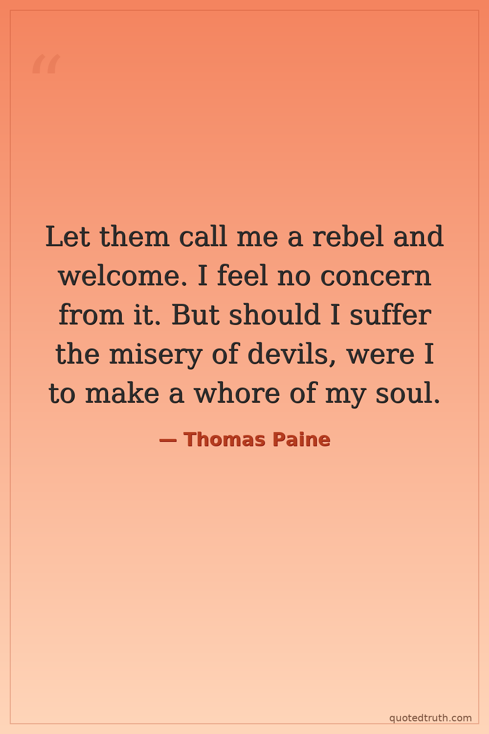 Let them call me a rebel and welcome. I feel no concern from it. But should I suffer the misery of devils, were I to make a whore of my soul.