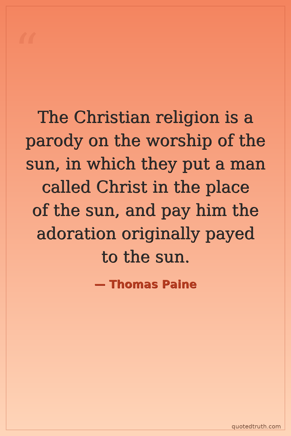 The Christian religion is a parody on the worship of the sun, in which they put a man called Christ in the place of the sun, and pay him the adoration originally payed to the sun.